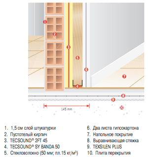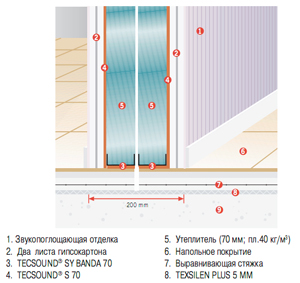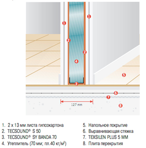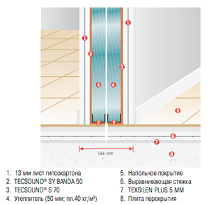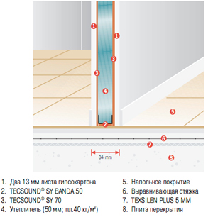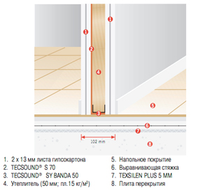 пол, Тексаунд придает дополнительную звукоизоляцию до 15 дБ. Известно, что