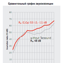 звукоизоляции, достигающего 28 дБ. А при добавлении его на стены, потолок или