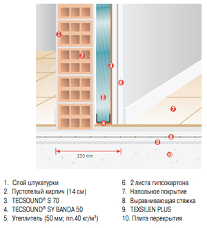 дополнительно бетонной стеной, толщиной более 30 см, что обеспечивает качественную звукоизоляцию в различных строительных элементах.